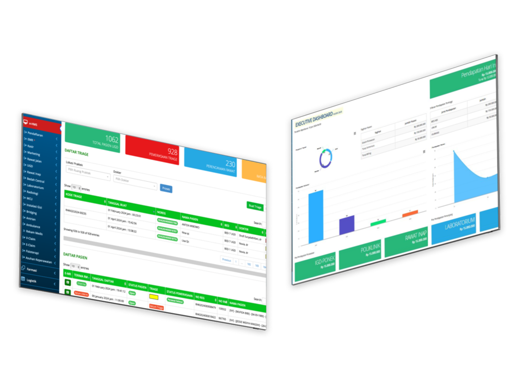 Aplikasi Sistem Informasi Rumah Sakit dengan Rekam Medis Elektronik (EMR) dan modul Akuntansi terintegrasi. Otomatisasi auto-jurnal, integrasi BPJS, E-Klaim, dan SATUSEHAT untuk lembaga kesehatan modern.